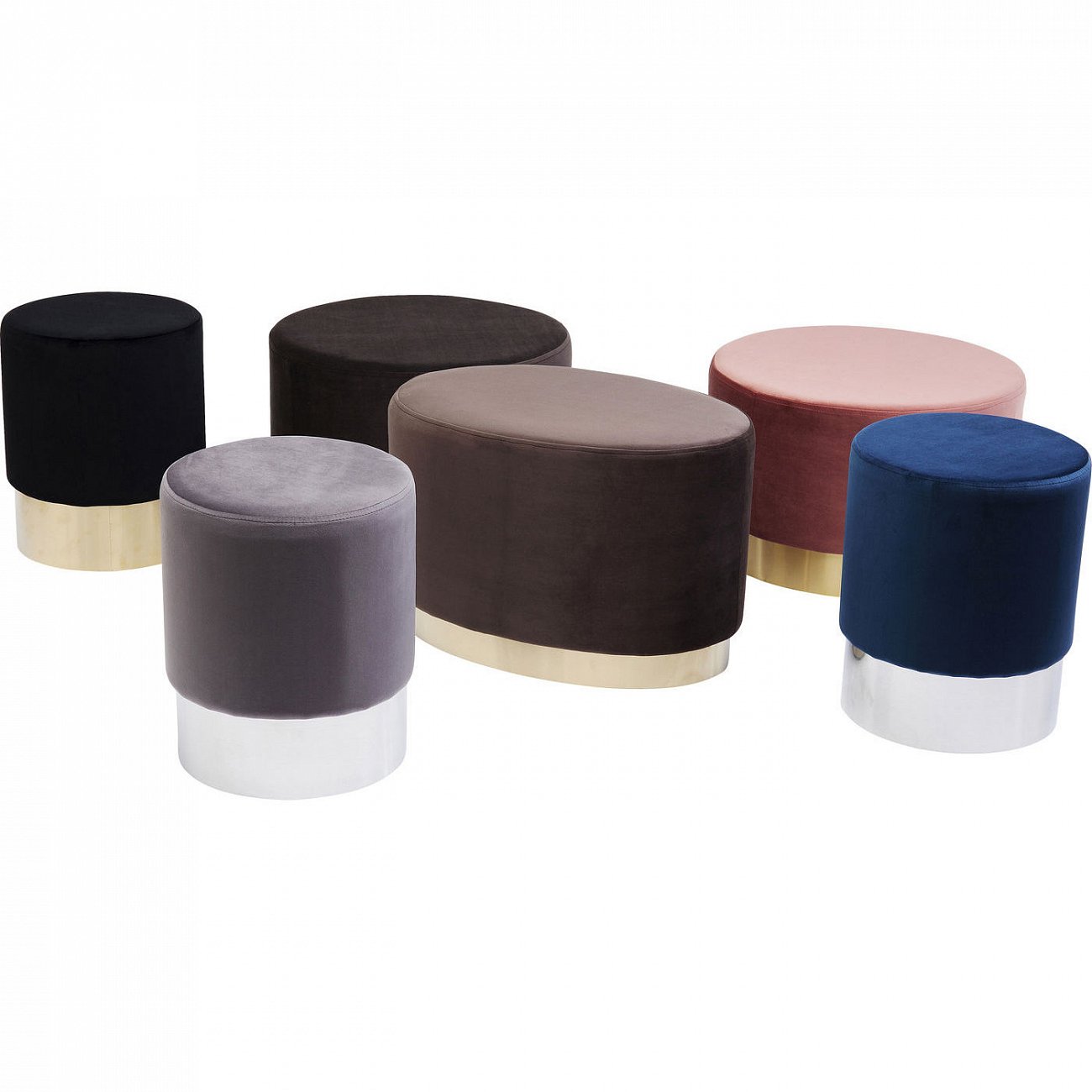 Прекрасная серия пуфов в ретро-стиле впечатляет элегантным оформлением, где модные цветовые решения сочетаются с нежной на ощупь тканью под бархат. Металлическое основание подчеркивает гламурный внешний вид. Пуф украсит даже самый маленький угол в интерьере. Доступен в других цветах и размерах.
