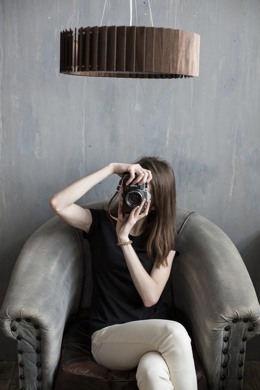 Люстра Ротор шпон ореха D45. Стильная люстра имеет динамичную форму и отлично подойдёт для современного интерьера. Основание Ротора изготовлено из акрилового матового стекла, и за счет рассеянного света люстра прекрасно осветит всё помещение. Деревянные пластины выполнены из шпона ореха и покрыты защитным маслом и воском, которые проявляют текстуру дерева.