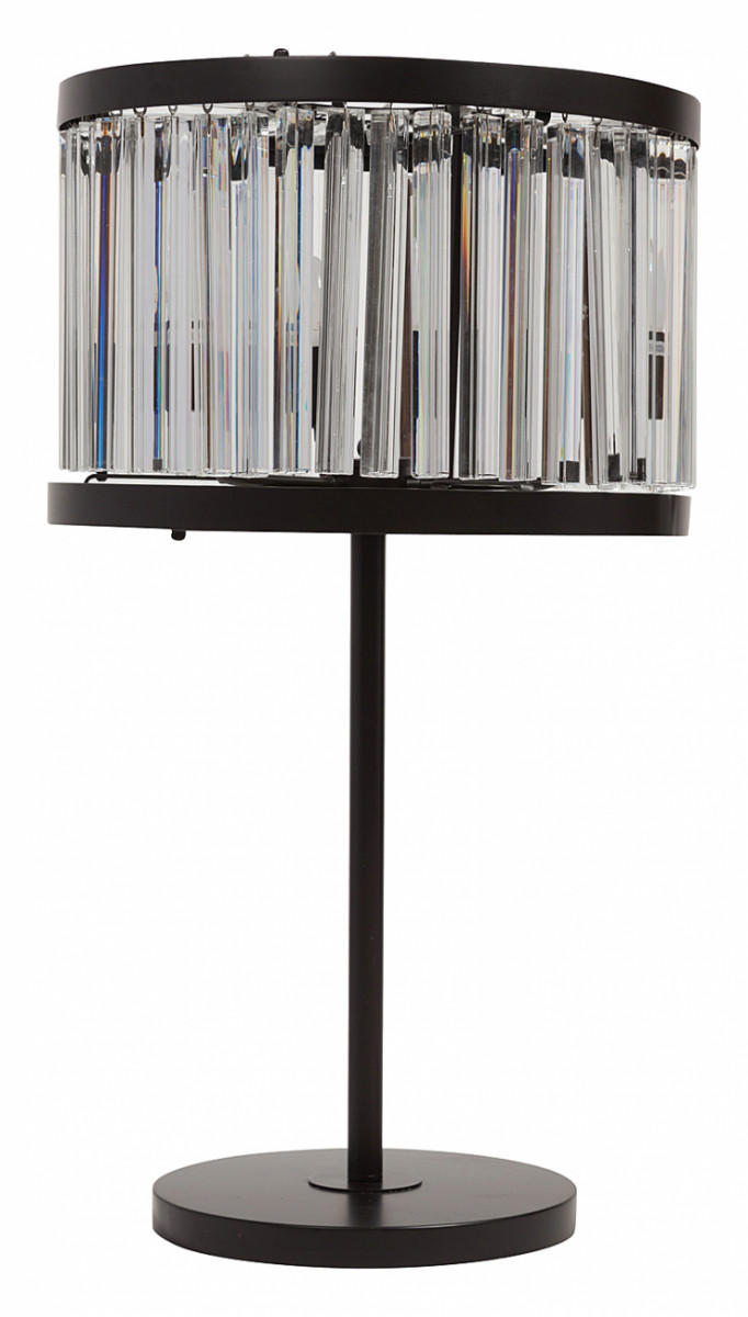 Настольная лампа WELLES для успешных и уверенных людей. Она уместна в кабинете или в гостиной. Эффектна и самодостаточна как в одиночестве, так и в паре при симметричной расстановке. Настольная лампа с основанием из металла и крупными хрустальными подвесками трехгранной формы. Примечательно, что хрустальные детали располагаются в самом верху изделия по кругу, а также с самого низа абажура, как бы закрывая весь плафон сверху и снизу. Подвесы с фронтальной стороны по всему кругу зафиксированы только сверху, что вносит в изделие легкую динамичность. Предназначена для использования со светодиодными лампами.