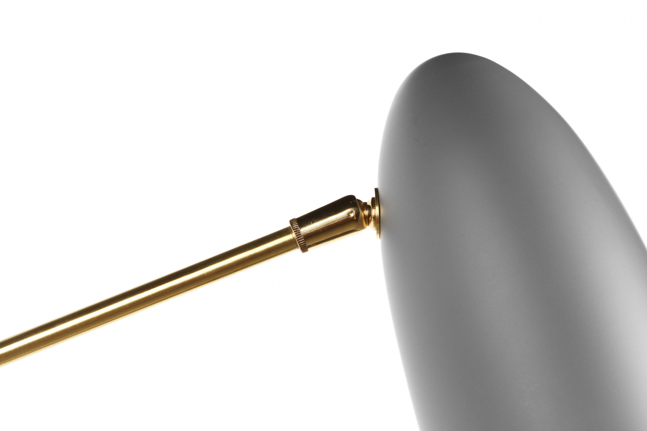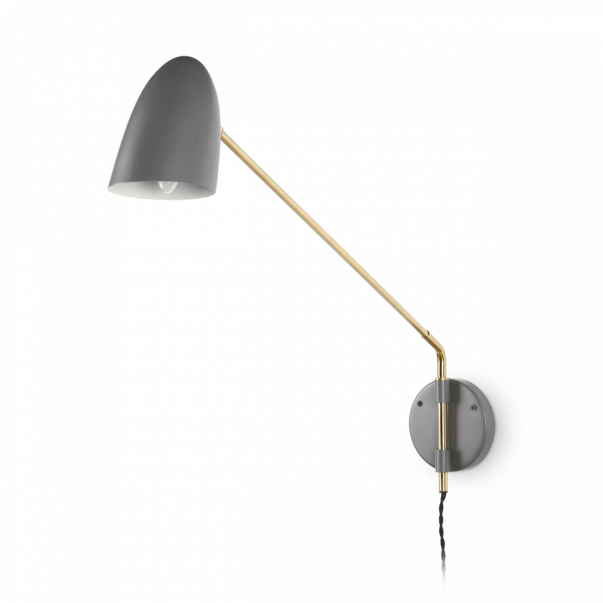 Настенный светильник Potence приятно сочетает классические материалы и расцветки модерна — металл опорной прямой переходит в узкий вытянутый абажур, выкрашенный в темно-серый цвет. Латунь, цвет, выбранный для арматуры, является самым распространенным и классическим решением. Эти два цвета составляют радующую гл.